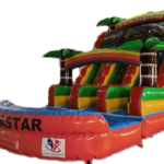 Die Hüpfburg „Bälleparadies“ ist eine farbenfrohe, rechteckige Struktur in leuchtendem Orange und Blau mit bunten Punkten als Dekoration. Sie hat Netzseitenwände für Sicherheit und gute Sichtbarkeit. Im Inneren befindet sich eine große Sprungfläche und eine Rutsche, die in ein Bällebad führt, was zusätzlichen Spielspaß bietet. Diese Hüpfburg ist perfekt für Kinder, die gerne in einer sicheren und unterhaltsamen Umgebung spielen möchten, und kombiniert Springen und Rutschen mit dem Vergnügen eines Bällebads.