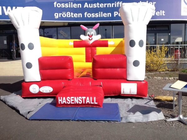 Willkommen im fröhlichen Hasenstall! Diese charmante Hüpfburg ist perfekt für kleine Abenteurer,