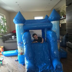 Hüpfburg in leuchtendem Blau entführt die Kinder in eine Unterwasserwelt voller Fische und