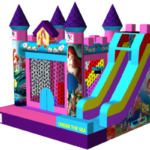 Die Hüpfburg „Pferdeliebe“ ist thematisch auf Pferde ausgerichtet. Sie hat eine braun-grüne Farbgebung und zeigt Bilder von Pferden auf den Seiten. Der Eingang ist ein großer Bogen mit der Aufschrift „Pferdeliebe“, über dem ein aufblasbarer Pferdekopf angebracht ist. Die Hüpfburg bietet eine Sprungfläche und ein kleines Klettergerüst im Inneren. Diese Hüpfburg ist ideal für Kinder, die Pferde lieben und gerne in einer thematisch passenden Umgebung spielen möchten.
