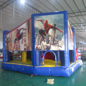 und Rutschmöglichkeit. An den Seiten befinden sich aufblasbare Spiderman-Figuren und Wände